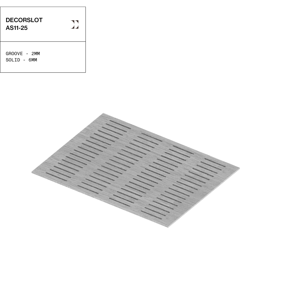 With its suitability for use indoors or out, as well as its Group 1 fire rating and non-combustibility, DecorSlot is one of the most versatile products within our range. Increase the acoustic performance by pairing DecorSlot with DecorSorb acoustic backing or omit the backing if the higher NRC is not required.