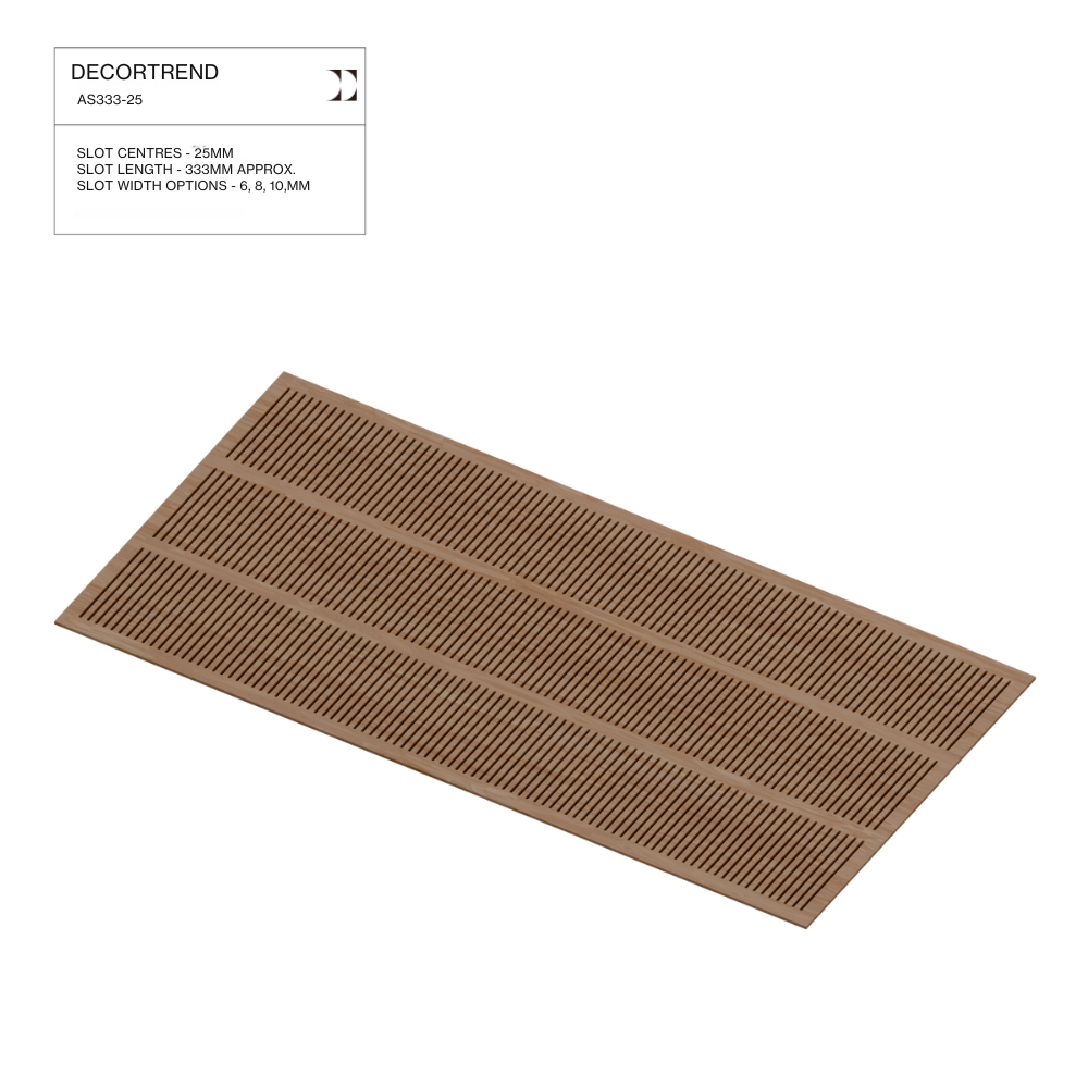 Unlike many other items within the range, the profile of the DecorTrend range centres around linear slots that offer a contemporary look. The slotted panels work brilliantly over large areas creating a pattern that satisfies the mind’s craving for symmetry and perfection.